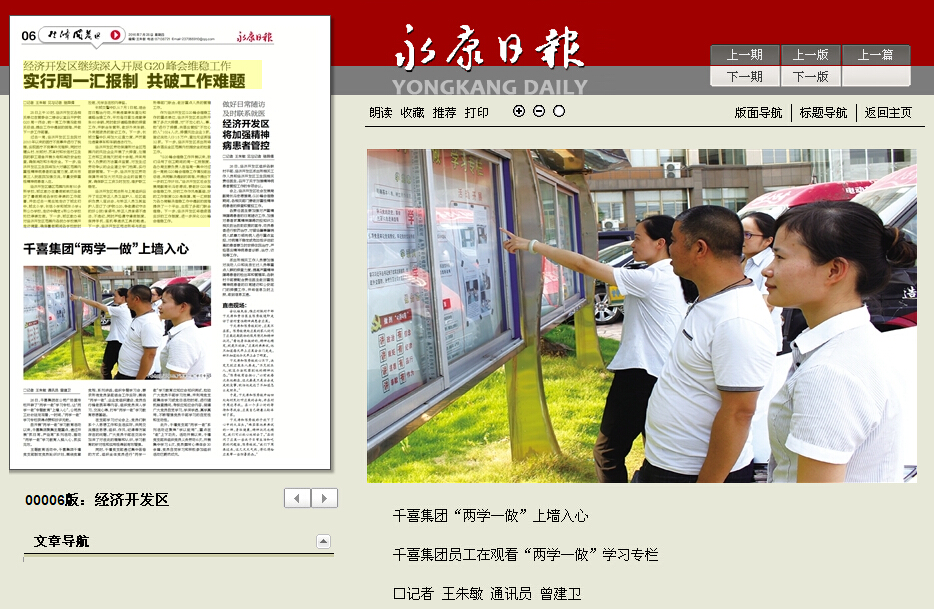 <永康日?qǐng)?bào)>:千喜集團(tuán)“兩學(xué)一做”上墻入心 閱讀11882次 發(fā)布日期:2016/7/26 |