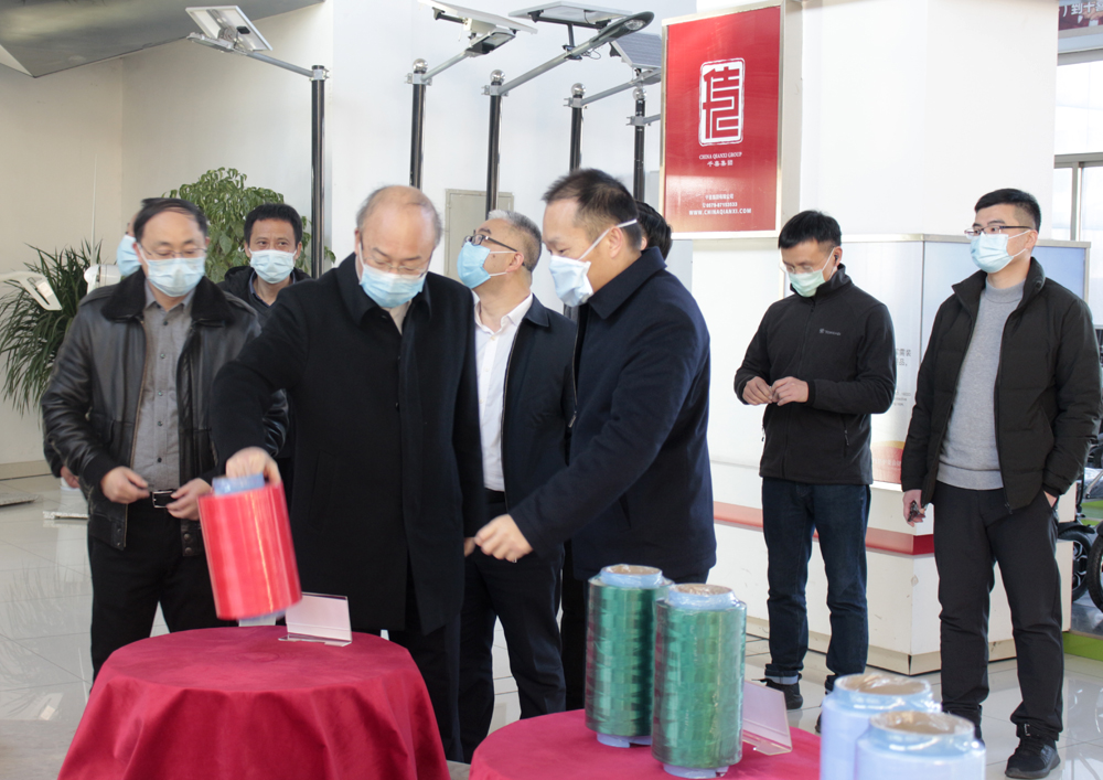 在集團(tuán)董事長(zhǎng)姚湘江等公司高層的陪同下,尹學(xué)群市長(zhǎng)、張群環(huán)市長(zhǎng)一行先后參觀了集團(tuán)展廳和千禧龍纖的生產(chǎn)車(chē)間。參觀集團(tuán)展廳時(shí),尹學(xué)群市長(zhǎng)、張群環(huán)市長(zhǎng)一行詳細(xì)了解了集團(tuán)旗下各子公司的產(chǎn)品線,并針對(duì)各個(gè)系列產(chǎn)品的應(yīng)用領(lǐng)域、延伸產(chǎn)品等方面,與隨行領(lǐng)導(dǎo)展開(kāi)討論與交流。參觀生產(chǎn)車(chē)間時(shí),則詳細(xì)的詢問(wèn)了復(fù)工后的生產(chǎn)情況及現(xiàn)場(chǎng)防疫管控工作的執(zhí)行情況。在與尹學(xué)群市長(zhǎng)、張群環(huán)市長(zhǎng)一行交流的過(guò)程中,姚湘江董事長(zhǎng)對(duì)復(fù)工復(fù)產(chǎn)后的生產(chǎn)情況逐一進(jìn)行了匯報(bào),并詳細(xì)說(shuō)明了集團(tuán)推行的各項(xiàng)防疫措施。