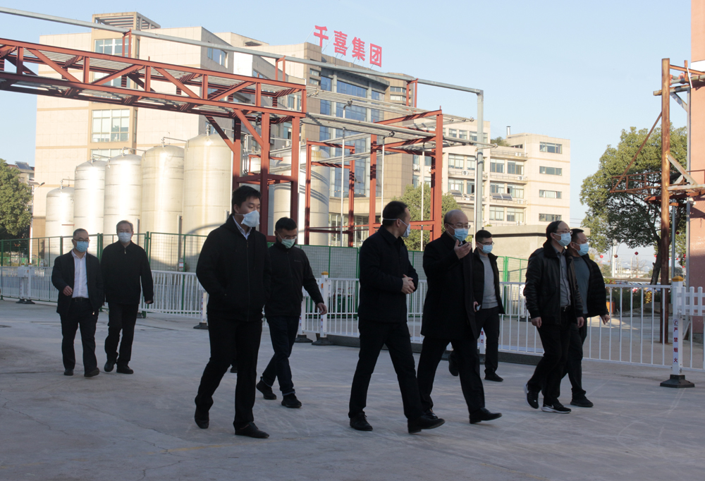 自確定復(fù)工日期后,為了讓企業(yè)有序推進(jìn)復(fù)工復(fù)產(chǎn)進(jìn)程,并做好疫情防控工作,千喜集團(tuán)得到了市府部門(mén)的大力支持和幫助。近期,金華市市長(zhǎng)尹學(xué)群一行蒞臨千喜集團(tuán),在永康市市長(zhǎng)張群環(huán)等領(lǐng)導(dǎo),集團(tuán)董事長(zhǎng)姚湘江等公司高層的陪同下參觀調(diào)研。